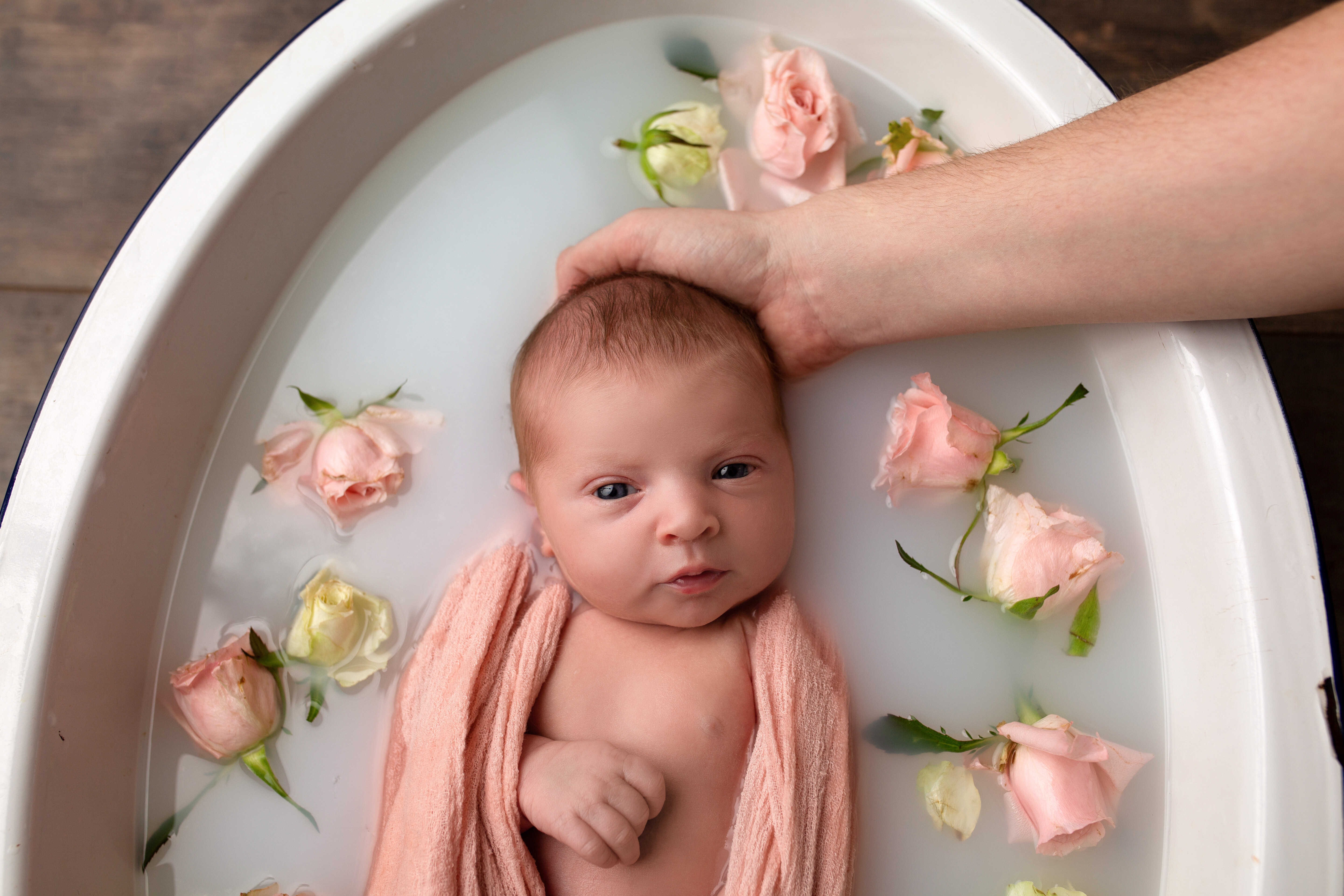 Le bain de lait enveloppé de fleurs et de végétaux vous permet d'immortaliser lors de la séance photo de naissance,